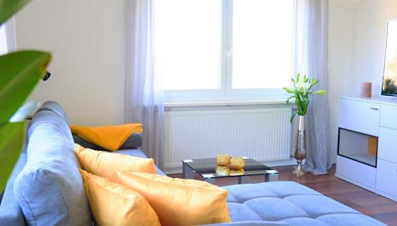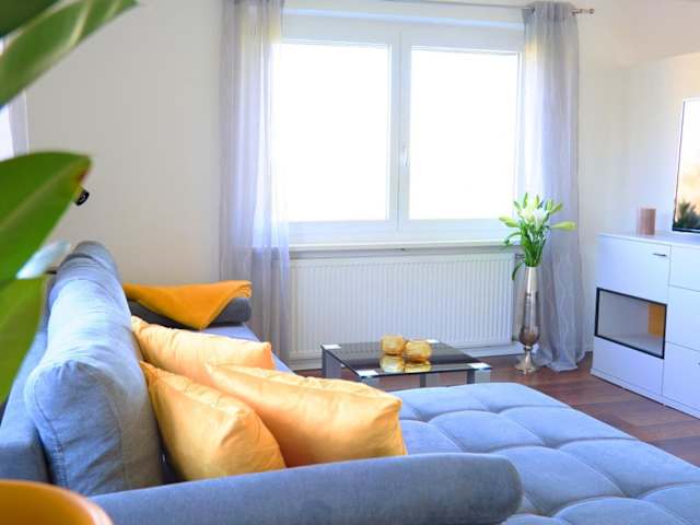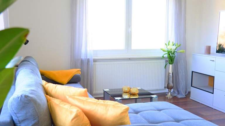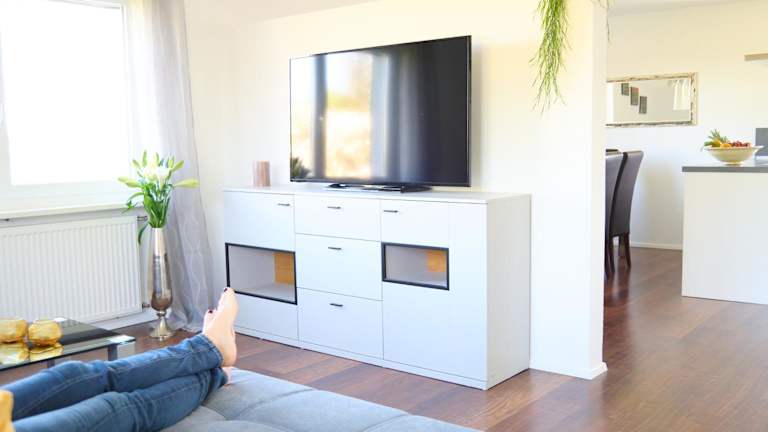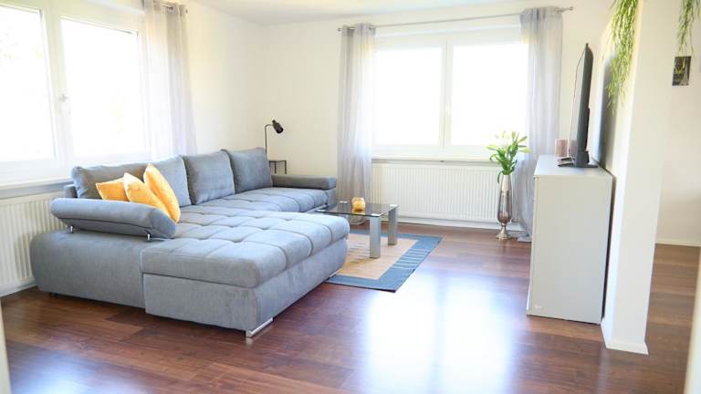 Die Ferienwohnung umfasst 2 Schlafzimmer, ein Wohnzimmer mit Flachbild-TV, eine gut ausgestattete Küche mit Kühlschrank und Geschirrspüler sowie ein Badezimmer mit Dusche. Handtücher und Bettwäsche werden bereitgestellt.