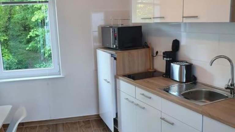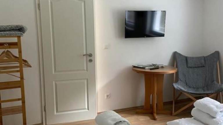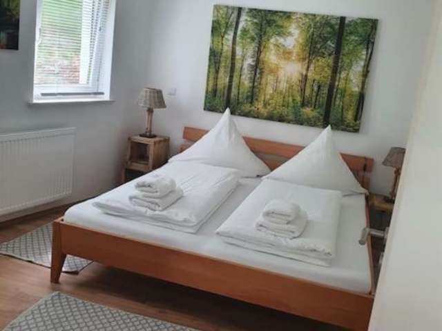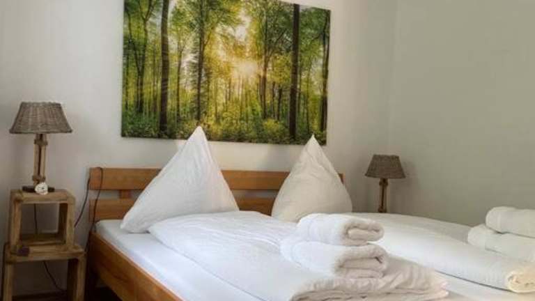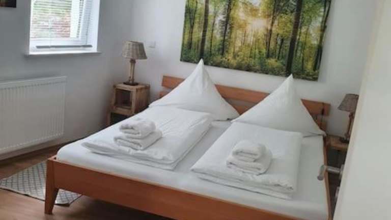 Die Ferienwohnung verfügt über ein Schlafzimmer, einen Flachbild-TV sowie eine voll ausgestattete Küche mit Kühlschrank und Ofen. Handtücher und Bettwäsche werden bereitgestellt.