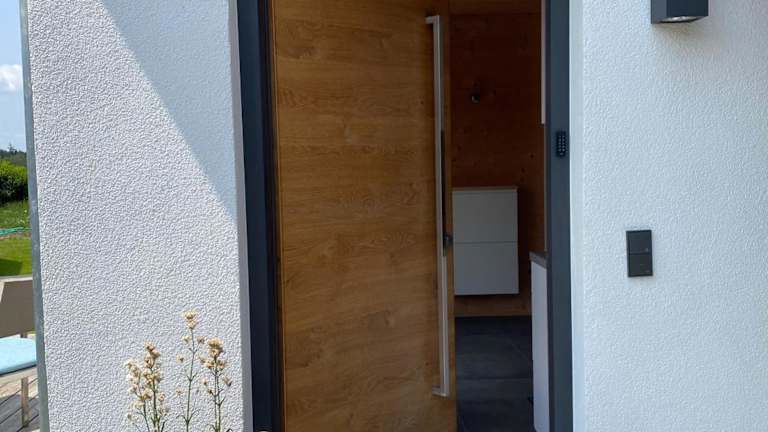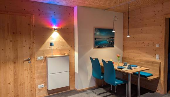 NaturWohnRaum - Urlaub im Holzhaus bietet Unterkünfte in einem Holzhaus mit kostenlosem WLAN und verschiedenen Annehmlichkeiten. Die Unterkunft hat einen Garten und bietet kostenlosen Privatparkplatz sowie eine Terrasse mit Gartenblick. Die Aufnahme ist von einem privaten Gastgeber geführt, der spezifische Richtlinien für Feiern hat.