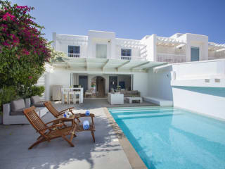 Die Nausicaa Luxury Villas bieten 2 stilvolle Zimmer, die in erdigen und blauen Farbtönen gehalten sind. Jedes Zimmer verfügt über eine voll ausgestattete Küche mit Kaffeemaschine und Mikrowelle sowie einen gemütlichen Essbereich. Die klimatisierten Zimmer sind komfortabel eingerichtet und bieten einen Flachbild-Sat-TV im Wohnzimmer. Ein Highlight der Unterkunft sind die eigenen Pools, die von einem gepflegten Garten umgeben sind.