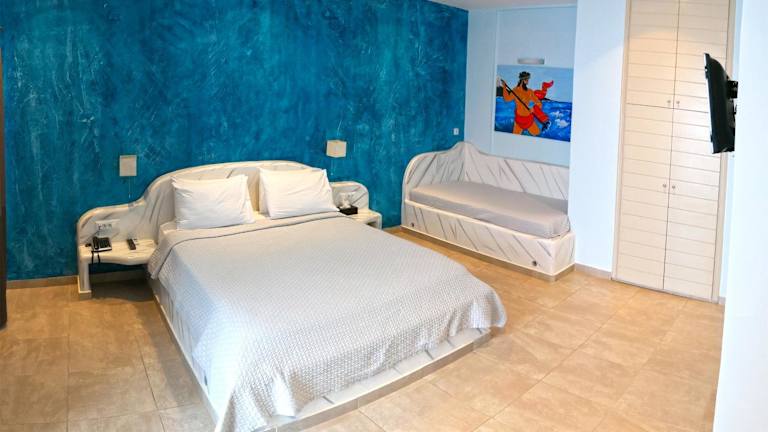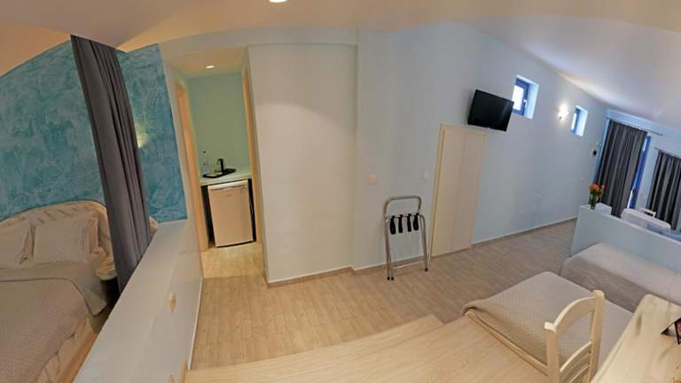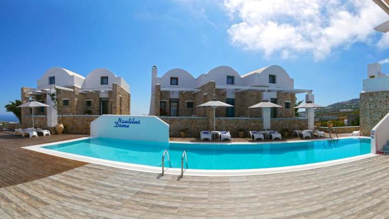 Die klimatisierten Suiten im Nautilus Dome sind in traditionellen, hellen Farbtönen gehalten und bieten Ihnen einen komfortablen Aufenthalt. Jede Suite verfügt über einen eigenen Balkon oder eine Terrasse mit Blick auf den Garten, den Vulkan oder die Ägäis. Im Inneren finden Sie einen gemütlichen Sitzbereich mit einem Flachbild-TV sowie kostenfreie Pflegeprodukte und einen Haartrockner.