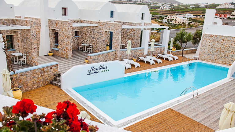 Das Nautilus Dome ist eine charmante Unterkunft, die sich an der Seite der Caldera befindet und einen atemberaubenden Blick auf die Ägäis und den Vulkan bietet. Hier können Sie in klimatisierten Suiten mit traditionellem Design und einem eigenen Balkon oder einer Terrasse entspannen. Der Poolbereich mit Liegestühlen und Sonnenschirmen lädt zum Verweilen ein, während Sie kostenfreies WLAN und Parkplätze nutzen können. Beginnen Sie Ihren Tag mit einem leckeren amerikanischen Frühstücksbuffet und genießen Sie erfrischende Getränke an der Poolbar. Die Unterkunft liegt in der Nähe von Tavernen, Bars und Supermärkten und ist nur eine kurze Fahrt von den schönen Stränden Monolithos und Kamari entfernt.