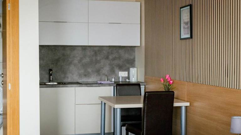 Die Zimmer bieten einen Satelliten Flachbild-TV, eine voll ausgestattete Küche mit Kühlschrank und Herdplatte sowie ein eigenes Badezimmer mit Dusche und kostenlosen Pflegeprodukten.