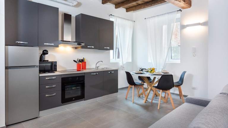 Naviglio suite apartments bietet eine komfortable Unterkunft mit Flussblick und kostenlosem WLAN. Die Apartments sind modern eingerichtet und beinhalten verschiedene Annehmlichkeiten. Jede Einheit ist mit einem eigenen Badezimmer ausgestattet.