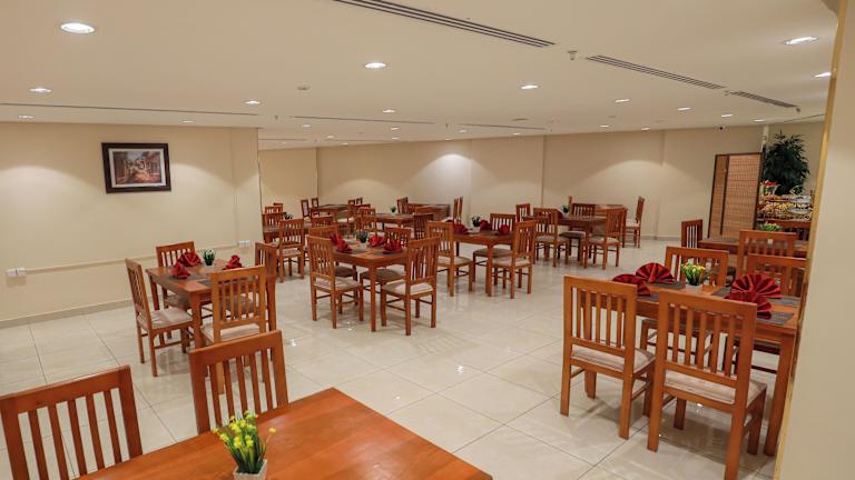 Das Hotel verfügt über ein hoteleigenes Restaurant, in dem köstliche Gerichte serviert werden. Gäste können auch den Zimmerservice in Anspruch nehmen und sich ihre Mahlzeiten auf ihr Zimmer bringen lassen. Das freundliche Personal an der 24-Stunden-Rezeption steht den Gästen jederzeit zur Verfügung und sorgt für einen angenehmen Aufenthalt.