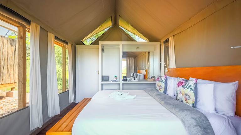 Die Zimmer in der Ndhula Luxury Tented Lodge sind komfortabel und stilvoll eingerichtet. Jedes Zimmer verfügt über ein eigenes Bad mit einer Dusche, kostenfreien Pflegeprodukten und einem Haartrockner. Genießen Sie den Blick auf den Garten und entspannen Sie sich in Ihrem privaten Rückzugsort. WLAN ist in allen Zimmern verfügbar und kostenfreie Privatparkplätze stehen zur Verfügung.