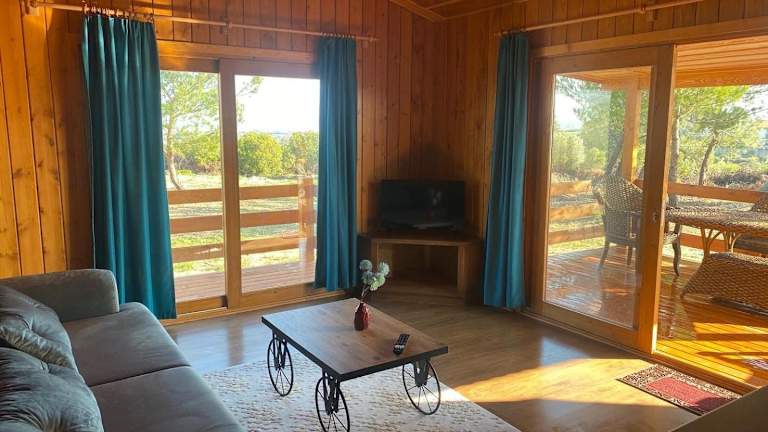 Nefes URLA Bungalov 3 bietet Stadtblick und umfasst einen Garten, eine Gemeinschaftslounge und eine Terrasse. Die Unterkunft ist in einem attraktiven Ferienhaus-Stil gestaltet und verfügt über einen kostenfreien Privatparkplatz sowie ein Restaurant.