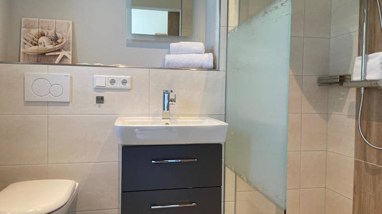 Die Zimmer im Nekkepenn-Boardinghouse verfügen über ein voll ausgestattetes eigenes Badezimmer, das mit einer Dusche und einem Haartrockner ausgestattet ist. Diese Annehmlichkeiten sorgen für eine bequeme Nutzung und eine angenehme Atmosphäre während des Aufenthalts.