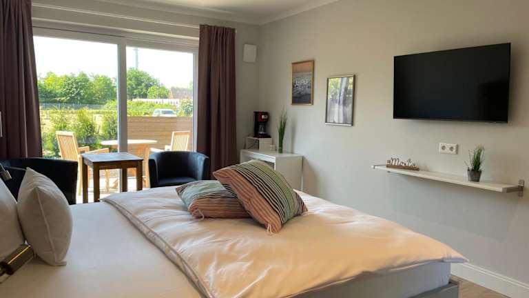 Die Unterkunft Nekkepenn-Boardinghouse befindet sich in Niebüll, in der Region Schleswig-Holstein. Die Lage bietet eine ruhige Umgebung und die Möglichkeit, die umliegenden Städte und Sehenswürdigkeiten zu erkunden. Flensburg ist 45 km und der Hauptbahnhof Flensburg 46 km entfernt, was einen unkomplizierten Zugang zu weiteren Ausflugszielen ermöglicht.
