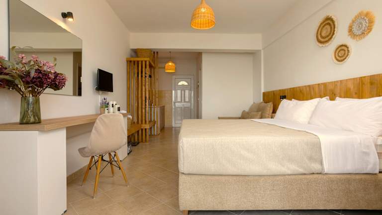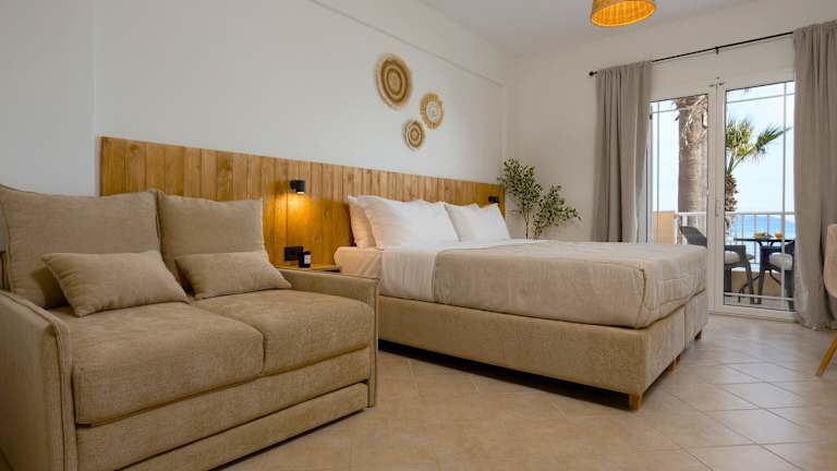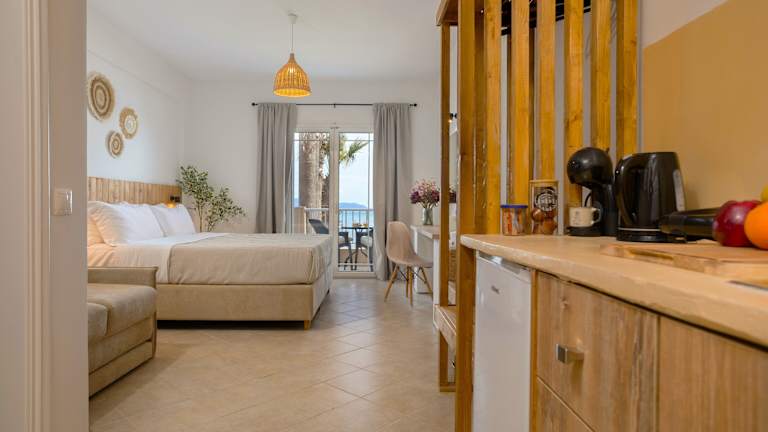 Die Nel Mare Studios in Laganas bieten ihren Gästen einen direkten Zugang zum Strand und sind eine ideale Unterkunft für einen entspannten Urlaub. Die klimatisierten Apartments verfügen über einen Balkon, kostenfreies WLAN und ein eigenes Bad mit Dusche. Kostenlose Liegestühle und Sonnenschirme stehen ebenfalls zur Verfügung. Zusätzlich können auf Anfrage und je nach Verfügbarkeit kostenfreie Babybetten bereitgestellt werden. Das Hotel bietet auch Schönheitsanwendungen wie Friseurdienstleistungen und Massagen gegen Aufpreis an. Wenn Sie die Umgebung erkunden möchten, können Sie gegen Aufpreis einen Mietwagen arrangieren lassen. Der Strand von Laganas ist nur 9 Gehminuten vom Hotel entfernt und der internationale Flughafen Zakynthos liegt etwa 4 km entfernt.