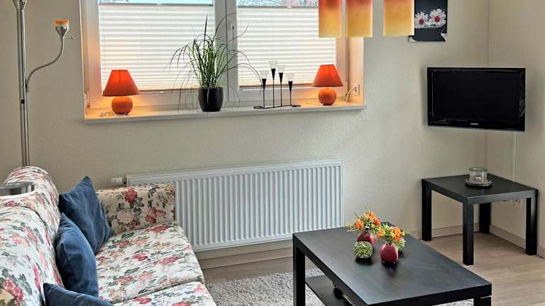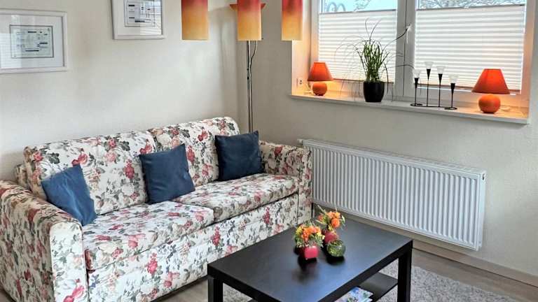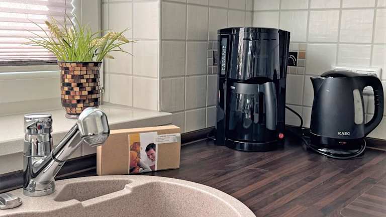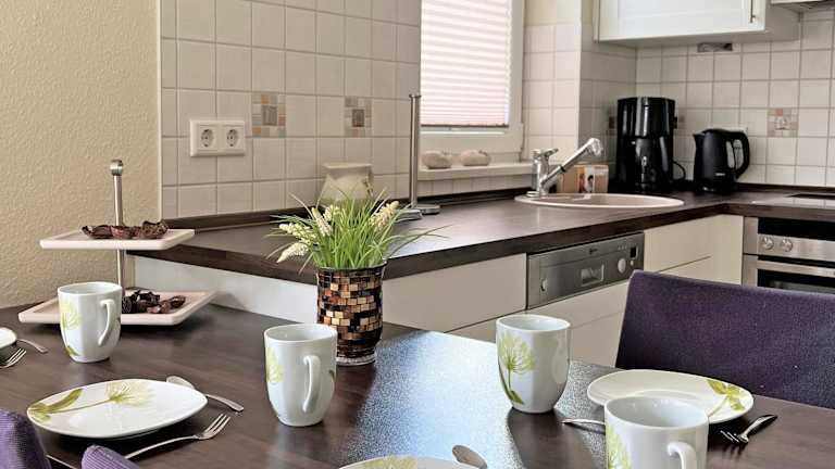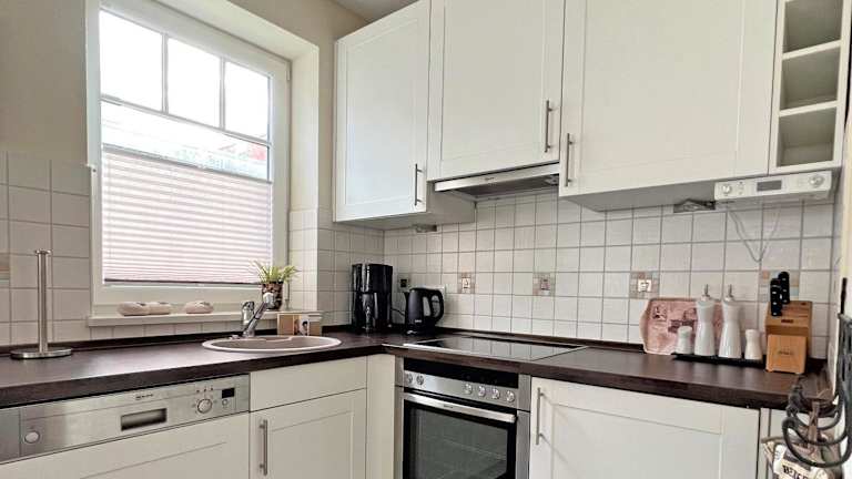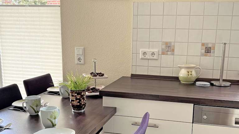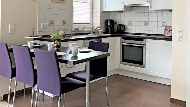 Die Ferienwohnung ist ausgestattet mit einem Satelliten-Flachbildfernseher, einem Sitzbereich und einem CD-Player. Die Küchenzeile verfügt über einen Kühlschrank, einen Geschirrspüler, einen Ofen, eine Kaffeemaschine und einen Wasserkocher.