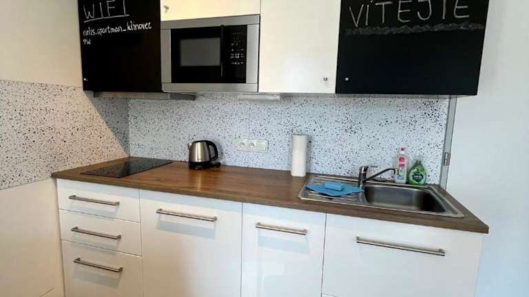 Das NEW Nelis Apartment Klínovec verfügt über ein gemütliches Schlafzimmer, eine gut ausgestattete Küche mit Kühlschrank und Mikrowelle sowie ein modernes Badezimmer mit Dusche und Haartrockner. Handtücher und Bettwäsche werden gestellt, um Ihnen einen angenehmen Aufenthalt zu ermöglichen. Kostenloses WLAN ist ebenfalls verfügbar.