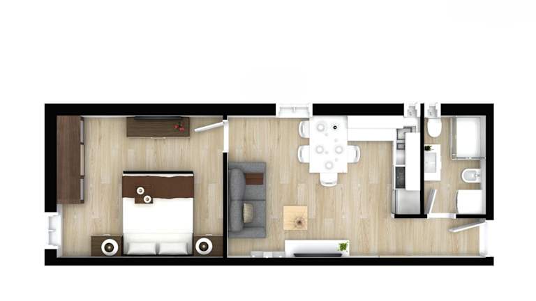 Die Ferienwohnung besteht aus 1 Schlafzimmer, einem Wohnzimmer, einer voll ausgestatteten Küche mit Kühlschrank und Kaffeemaschine sowie 1 Badezimmer mit Bidet und Dusche. Handtücher und Bettwäsche werden bereitgestellt.