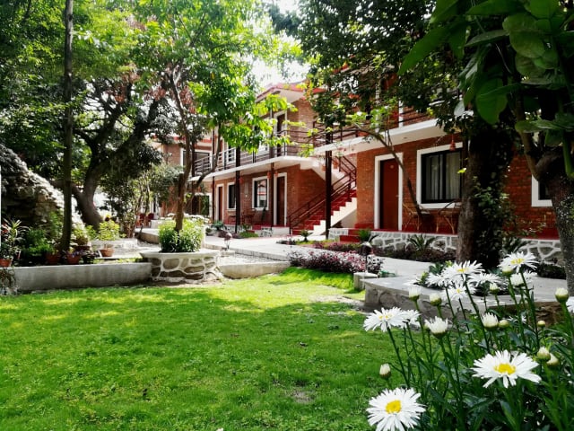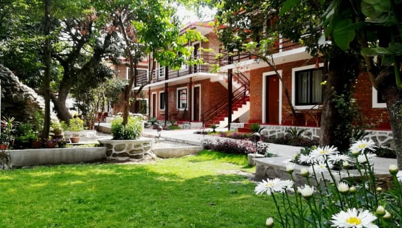 Das Nepal Cottage Resort in Kathmandu ist eine ideale Unterkunft für Reisende, die eine angenehme und komfortable Atmosphäre suchen. Das Hotel bietet kostenfreies WLAN, einen schönen Garten und geräumige Zimmer. Es liegt in der Nähe vieler touristischer Attraktionen und ist gut mit öffentlichen Verkehrsmitteln erreichbar. Das freundliche Personal steht Ihnen rund um die Uhr zur Verfügung und das Restaurant bietet eine Auswahl an indischen und vegetarischen Gerichten.