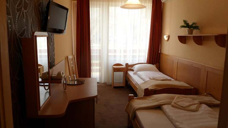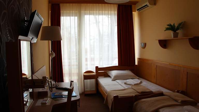 Die Zimmer im Nereus Park Hotel sind komfortabel und bieten alles, was Sie für einen angenehmen Aufenthalt benötigen. Jedes Zimmer verfügt über ein eigenes Badezimmer, einen Kühlschrank und Sat-TV. Die meisten Zimmer bieten einen herrlichen Blick auf den Plattensee, der Ihren Aufenthalt noch angenehmer macht. Gegen Aufpreis können Sie auch Zimmer mit Klimaanlage buchen, um sich an heißen Tagen abzukühlen.