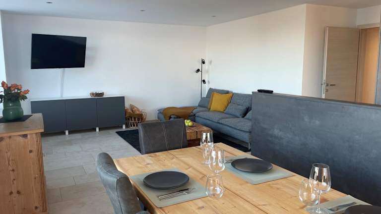 Die Ferienwohnung umfasst 3 Schlafzimmer, eine Küche, die mit einem Kühlschrank und einem Geschirrspüler ausgestattet ist, sowie einen Flachbild-TV und einen gemütlichen Sitzbereich. Das Badezimmer ist mit einer Dusche ausgestattet. Handtücher und Bettwäsche werden zur Verfügung gestellt.