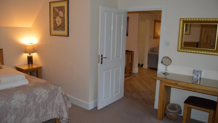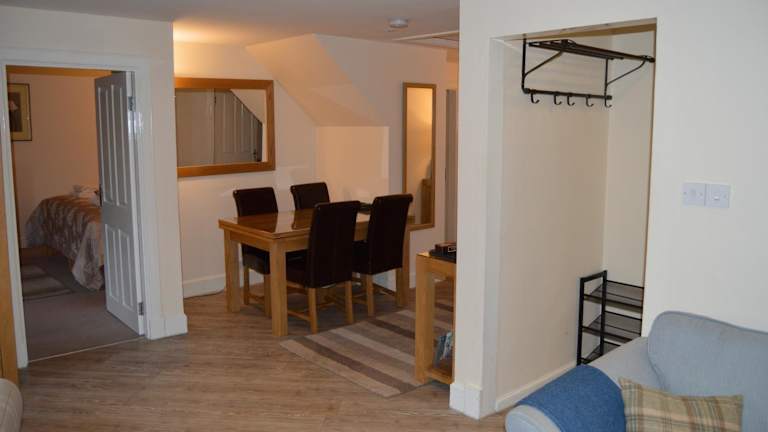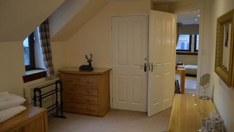 Das Ness View Apartment bietet elegante und komfortable Unterkünfte für Gäste. Mit einem Schlafzimmer mit Kingsize-Bett und einem Zweibettzimmer gibt es genügend Platz für Familien oder Gruppen von Freunden. Das luxuriöse Badezimmer verfügt über eine Badewanne und eine elektrische Dusche für zusätzlichen Komfort. Die Lounge ist mit hochwertigen Eichenmöbeln, einem Flachbild-TV mit Blu-ray-, DVD- und CD-Player sowie Brettspielen und Büchern über die Region ausgestattet. Die Küche bietet einen herrlichen Blick auf den Fluss und ist mit allen notwendigen Geräten wie Backofen, Mikrowelle, Kühl-Gefrierkombination und Geschirrspüler ausgestattet. Ein attraktiver Essbereich rundet die Ausstattung ab. Wäschemöglichkeiten wie eine Waschmaschine, ein Trockner und Bügelzubehör sind ebenfalls vorhanden.