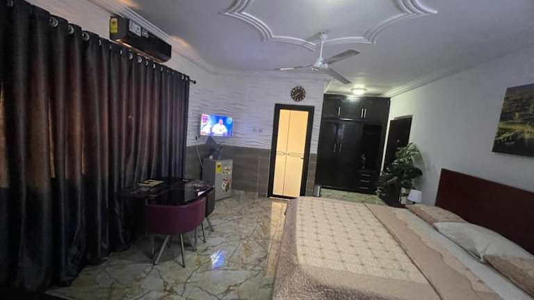 Das NESTA BARRON -Home Away from Home in North Legon ist der ideale Ort, um sich wie zu Hause zu fühlen. Mit kostenfreiem WLAN, einem Fitnesscenter und einem schönen Garten bietet dieses Bed & Breakfast alle Annehmlichkeiten für einen angenehmen Aufenthalt. Die Zimmer sind komfortabel eingerichtet und verfügen über ein eigenes Bad, Klimaanlage, Flachbild-TV und Kühlschrank. Einige Unterkünfte bieten sogar eine voll ausgestattete Küchenzeile. Die Lage des B&Bs ermöglicht es den Gästen, die Sehenswürdigkeiten von Accra wie den Kwame Nkrumah Memorial Park und den Independence Arch zu erkunden. Der internationale Flughafen Kotoka ist ebenfalls gut erreichbar.