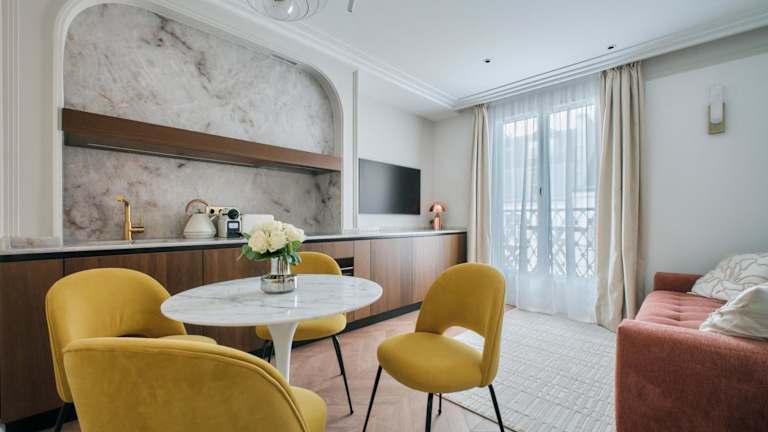 Die Zimmer im Nestay Les Halles sind mit Klimaanlage ausgestattet und verfügen über eine voll ausgestattete Küche mit Essbereich, Kühlschrank, Ofen, Mikrowelle, Kaffeemaschine und Wasserkocher. Des Weiteren ist ein Flachbild-TV vorhanden. Jedes Zimmer hat ein eigenes Badezimmer mit Dusche, kostenlosen Pflegeprodukten und einem Haartrockner. Auch schallisolierte Zimmer sind verfügbar.