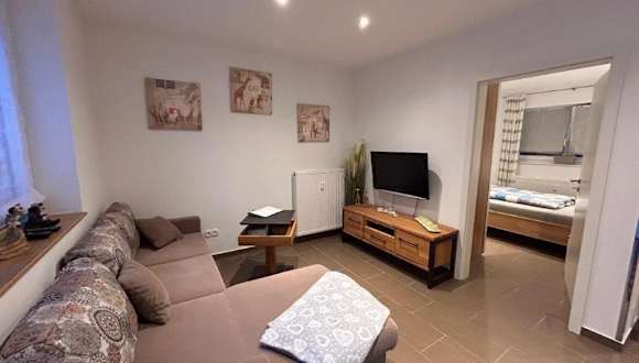 Die Ferienwohnung besteht aus einem Schlafzimmer, einem Wohnzimmer und einem Badezimmer mit Dusche und Haartrockner. Handtücher und Bettwäsche werden bereitgestellt.