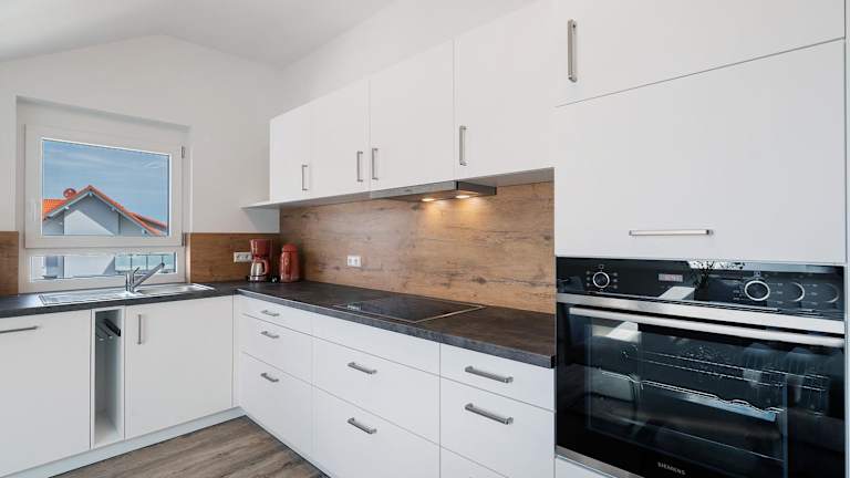 Die Neubau Ferienwohnung Kleine Auszeit bietet eine komfortable Unterkunft mit Gartenblick und kostenlosem WLAN in sämtlichen Bereichen. Die Ferienwohnung verfügt über einen Balkon mit Blick auf die Berge und umfasst ein Schlafzimmer, ein Wohnzimmer sowie eine gut ausgestattete Küche.