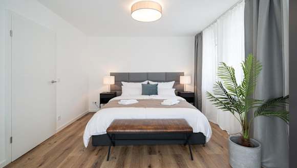 Das Apartment bietet zwei Schlafzimmer und eine Rooftop-Terrasse, was einen zusätzlichen Aufenthaltsbereich im Freien ermöglicht.
