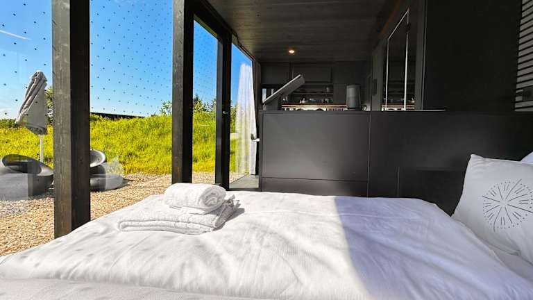 Die Cabins verfügen über einen Sitzbereich, einen Flachbild-TV, ein eigenes Badezimmer mit Dusche und Haartrockner sowie andere Annehmlichkeiten für einen komfortablen Aufenthalt.