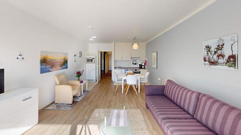 Das Apartment im NeuKlosterhof App. 14 verfügt über einen Balkon, auf dem Sie die frische Meeresluft genießen können. Die voll ausgestattete Küche bietet Ihnen die Möglichkeit, Ihre eigenen Mahlzeiten zuzubereiten, und das private Badezimmer sorgt für Komfort und Privatsphäre. Ein Fernseher steht ebenfalls zur Verfügung, um Ihnen Unterhaltung zu bieten.