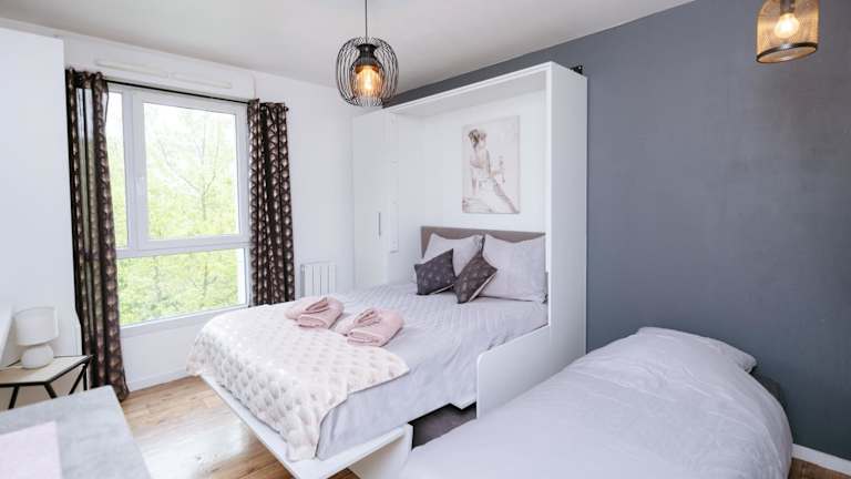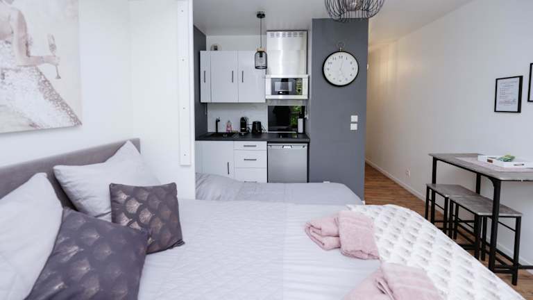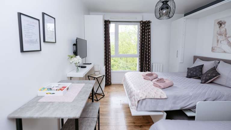 NeuvaRoom befindet sich in Montévrain, in einer Entfernung von 600 m zur RER Station Val d'Europe und 4,3 km zu Disneyland Paris. Der nächste Flughafen ist der Flughafen Paris-Charles-de-Gaulle, etwa 26 km entfernt.