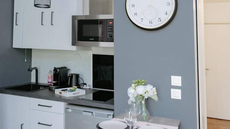 Die Unterkunft verfügt über ein Schlafzimmer, eine Küchenzeile mit Kühlschrank und Mikrowelle sowie ein Badezimmer mit Badewanne, Haartrockner und Waschmaschine. Handtücher und Bettwäsche werden bereitgestellt. Die Wohnung bietet Nichtraucherzimmer und Familienzimmer.