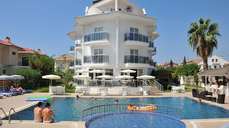 Das Nevada Hotel in Fethiye ist ein kleines Boutique-Hotel in ruhiger Lage direkt am Strand. Hier können Sie einen entspannten Urlaub verbringen und die Annehmlichkeiten des Hotels genießen. Die klimatisierten Zimmer bieten Ihnen einen Balkon und kostenfreies WLAN. Der 24-Stunden-Zimmerservice steht Ihnen zur Verfügung. Entspannen Sie sich im türkischen Bad, im Pool oder lassen Sie sich mit einer Massage verwöhnen. Im Restaurant werden traditionelle türkische Gerichte und internationale Spezialitäten serviert.