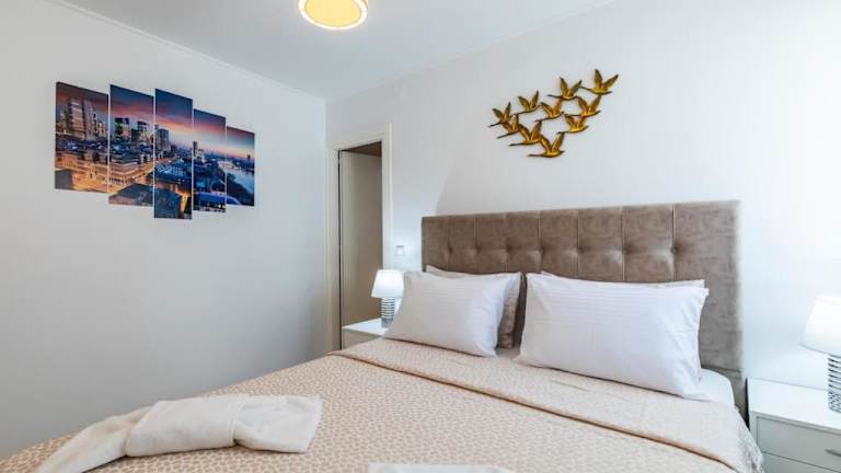 Das klimatisierte Apartment im Nevila House bietet Platz für bis zu 4 Personen und verfügt über 2 Schlafzimmer, ein gemütliches Wohnzimmer und eine voll ausgestattete Küche mit Kühlschrank und Kaffeemaschine. Es gibt auch 2 Badezimmer mit Dusche und Haartrockner. Das Apartment ist geschmackvoll eingerichtet und bietet einen komfortablen Sitzbereich zum Entspannen. Kostenfreies WLAN ist ebenfalls verfügbar.