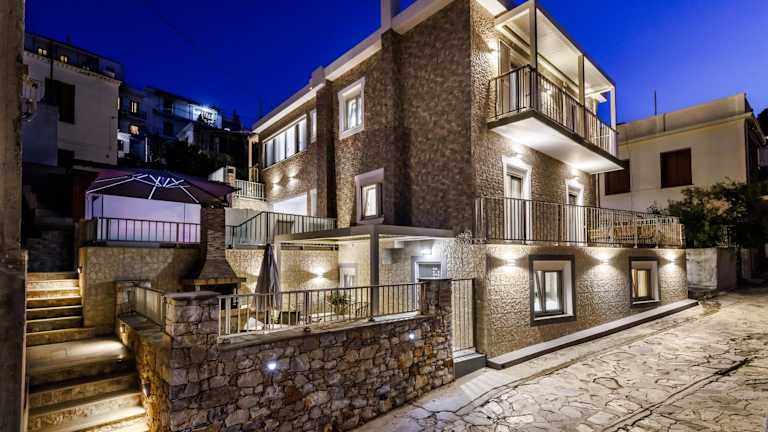 Das Nevila House befindet sich in der charmanten Stadt Skopelos, nur 700 m vom Stadtstrand entfernt. Die Lage ist ideal, um die natürliche Schönheit der Insel zu erkunden und Aktivitäten wie Wandern und Angeln in der Umgebung zu genießen. In der Nähe finden Sie auch beliebte Sehenswürdigkeiten wie den Strand Glyfoneri und das Folklore-Museum Skopelos. Der Hafen von Skopelos ist ebenfalls leicht zu erreichen und bietet eine Vielzahl von Restaurants, Geschäften und Unterhaltungsmöglichkeiten. Der Flughafen Skiathos ist nur 38 km entfernt und bietet eine bequeme Anreisemöglichkeit.