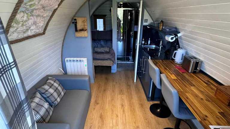 Die Campingkapsel im Nevis Pod, West Highland Way Holidays bietet gemütliche Unterkünfte mit einer Küchenzeile. Die Kapsel verfügt über einen Sitzbereich mit einem Flachbild-TV und ein eigenes Badezimmer mit kostenfreien Pflegeprodukten und einer Dusche. Zusätzlich gibt es eine Mikrowelle, einen Toaster, einen Kühlschrank und einen Wasserkocher für die Zubereitung von Mahlzeiten.