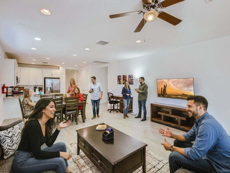 Das NEW - 5BR Home 20 min from Phoenix - AT bietet 5 geräumige Schlafzimmer, die Platz für größere Gruppen bieten. Das Haus ist klimatisiert und verfügt über einen gemütlichen Wohnbereich mit Kabel-TV. Die Küche ist mit einem Kühlschrank und einem Geschirrspüler ausgestattet, so dass die Gäste ihre eigenen Mahlzeiten zubereiten können. Handtücher und Bettwäsche werden gestellt, um den Aufenthalt so angenehm wie möglich zu gestalten.