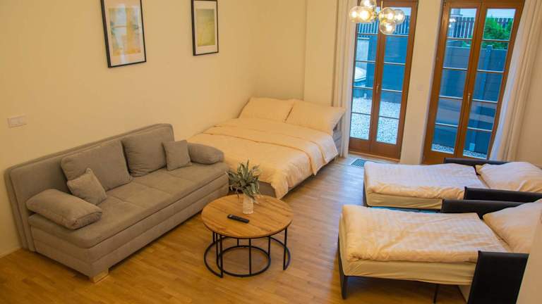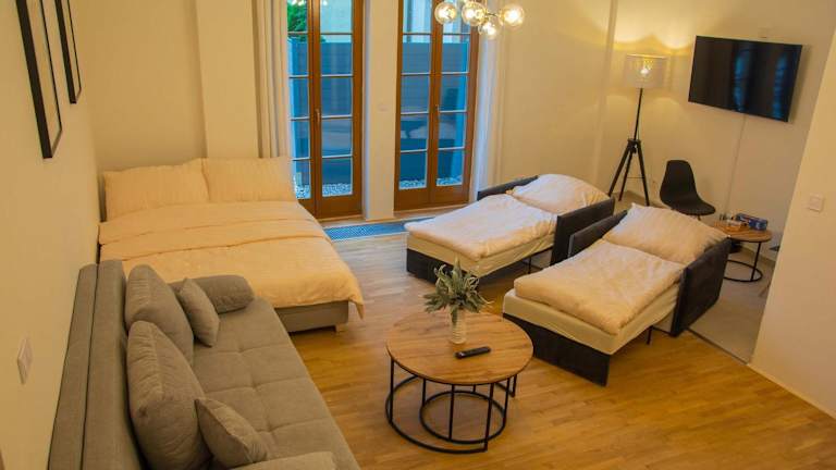 Das New City Centre Garden Apartment - Central Location bietet einen schönen Gartenblick und ist ideal für einen Aufenthalt in Prag. Die Unterkunft ist klimatisiert und umfasst eine Terrasse, drei Schlafzimmer, ein Wohnzimmer sowie eine gut ausgestattete Küche. Kostenfreies WLAN ist vorhanden und ein Privatparkplatz steht ebenfalls zur Verfügung.
