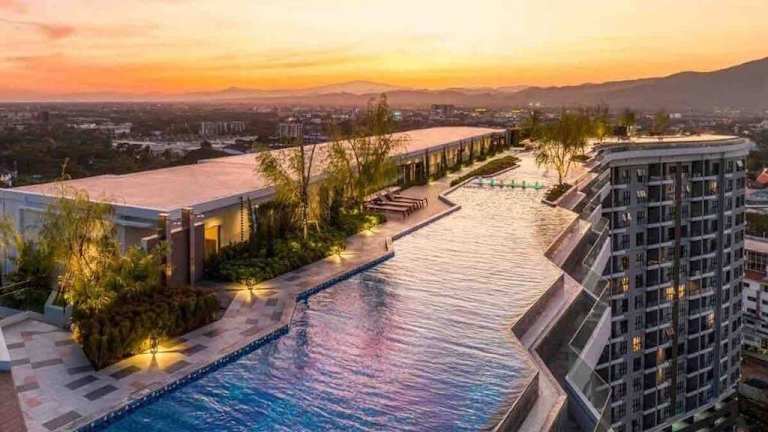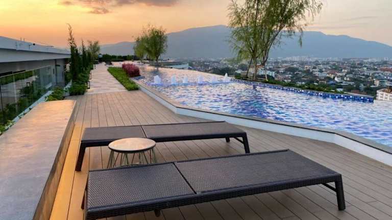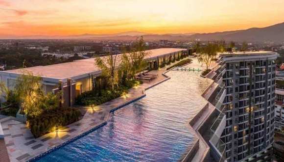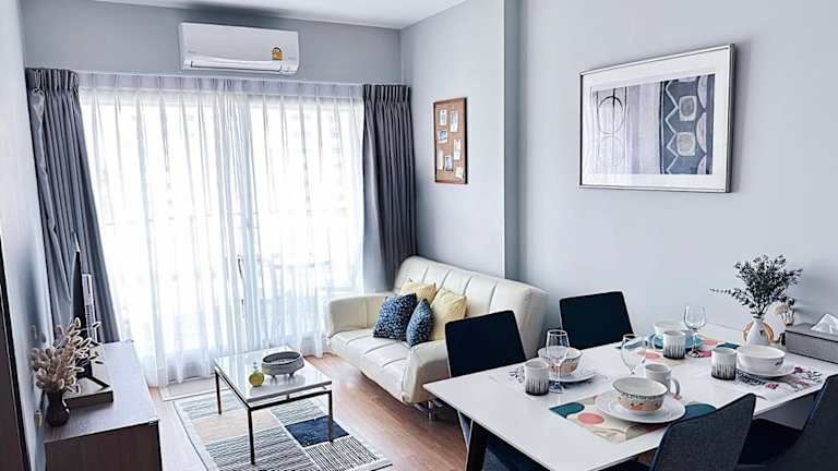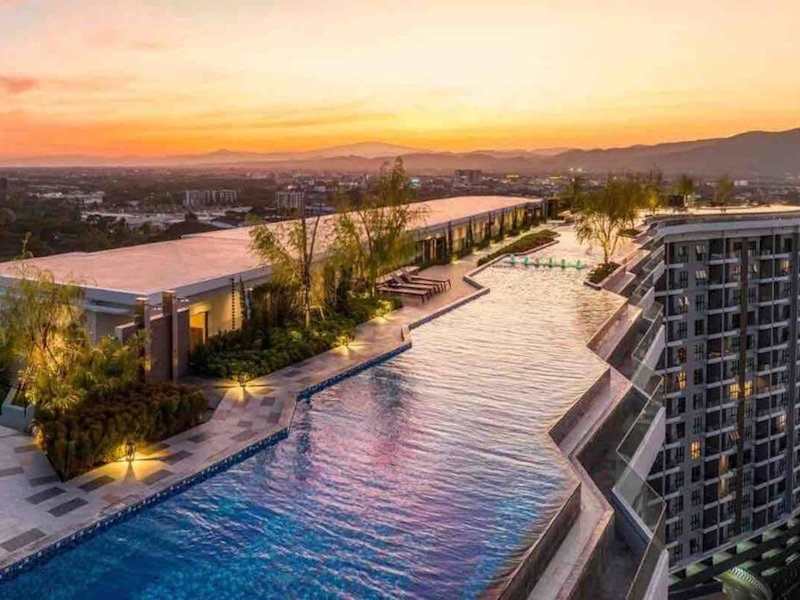 New & Cozy 2 BR @ The Astra Sky River Chiang mai ist eine Ferienwohnung, die modernen Komfort und Annehmlichkeiten bietet. Die Unterkunft verfügt über einen eigenen Außenpool sowie eine Sauna und ist ideal für Familienwahl oder als Ruhesitz.