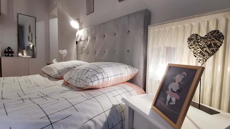 Die Ferienwohnung umfasst ein Schlafzimmer, ein Wohnzimmer und eine komplett eingerichtete Küche, die mit einem Kühlschrank und einer Kaffeemaschine ausgestattet ist. Das Badezimmer bietet eine Badewanne und einen Haartrockner. Handtücher und Bettwäsche werden bereitgestellt.