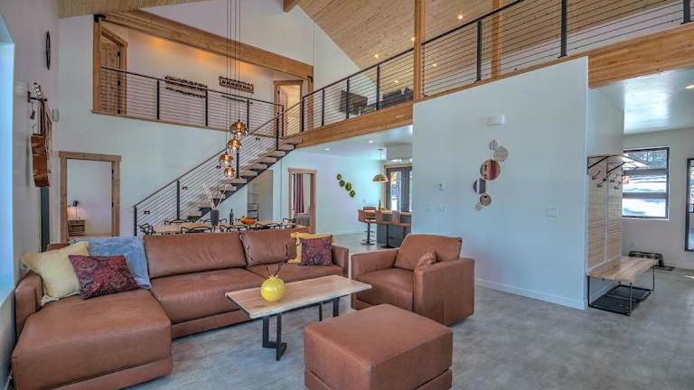 NEW Hot Tub Haven with Panoramic View - Blue River ist ein Ferienhaus mit Bergblick, das kostenlosen WLAN-Zugang und einen kostenlosen Privatparkplatz bereitstellt. Die Unterkunft bietet insgesamt 4 Schlafzimmer und 4 Badezimmer. Ein Balkon steht den Gästen zur Verfügung.