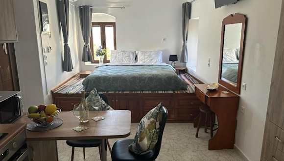 New Lindos Studio 45 renovated ist eine renovierte Ferienwohnung, die einen Garten, eine Terrasse und eine Gemeinschaftsküche bietet. Die Unterkunft ermöglicht den Gästen einen Blick auf das Meer und die Berge, zudem steht kostenloses WLAN zur Verfügung.