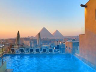 Das New Pyramid Front Hotel liegt in Kairo im Bezirk Giza, nur 1,6 km von den Pyramiden von Gizeh und 3,3 km von der Großen Sphinx von Gizeh entfernt. Der Fernsehturm Kairo ist 13 km entfernt und der Flughafen Kairo befindet sich 29 km von der Unterkunft.