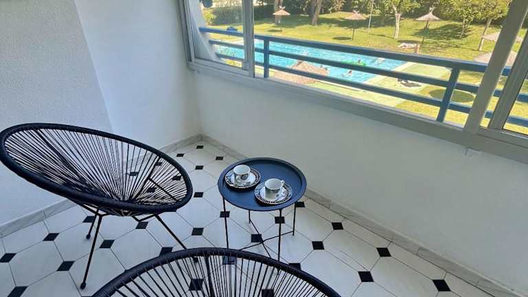 Die Unterkunft New Spacious Family Apartment 3 Bedrooms Pool 5 Min from the Sea bietet einen Gartenblick und umfasst eine großzügige Wohnfläche mit einem Poolblick.