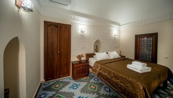 Das Hotel befindet sich in Chiwa und bietet seinen Gästen einen idealen Ausgangspunkt, um die Stadt zu erkunden. Die Unterkunft liegt in der Nähe des internationalen Flughafens Urgench, der nur 36 km entfernt ist. Entdecken Sie die Schönheit von Chiwa und genießen Sie die kulturellen Sehenswürdigkeiten und historischen Stätten der Stadt.