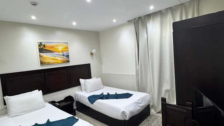 Das New Star Zamalek Hotel begrüßt die Gäste in Kairo und bietet eine Vielzahl von Dienstleistungen. Zu den Einrichtungen gehören ein freundliches Personal an der Rezeption, das bei Fragen behilflich ist, sowie eine Gepäckaufbewahrung, ein Safe und eine Wechselstube. WLAN ist in den öffentlichen Bereichen verfügbar, und es wird Unterstützung bei der Buchung von Ausflügen am Tourdesk angeboten. Des Weiteren sind ein Aufzug und rollstuhlgerechte Einrichtungen vorhanden. Zu den weiteren Annehmlichkeiten zählen ein TV-Raum, Parkmöglichkeiten und ein 24-Stunden-Zimmerservice.
