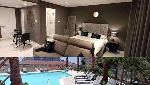 Die NEW - Studio Apartments in EuroCity bieten eine moderne und komfortable Übernachtungsmöglichkeit mit einem großen Außenpool. Die Apartments sind mit kostenlosem WLAN und Klimaanlage ausgestattet und verfügen über eine Terrasse mit Stadtblick sowie Bergblick von den Balkonen.