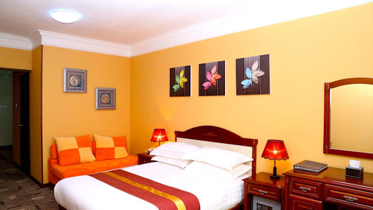 Das New West Hotel in Ulaanbaatar bietet seinen Gästen einen angenehmen Aufenthalt mit erstklassigem Service und einer Vielzahl von Annehmlichkeiten. Die Lage des Hotels ist ideal, nur eine kurze Fahrt vom Bahnhof und dem Stadtzentrum entfernt. Die Zimmer sind geschmackvoll gestaltet und bieten modernen Komfort. Das Hotel verfügt über ein ausgezeichnetes Restaurant, eine Minigolfanlage und Massage-Einrichtungen. WLAN steht den Gästen in der gesamten Unterkunft kostenlos zur Verfügung.