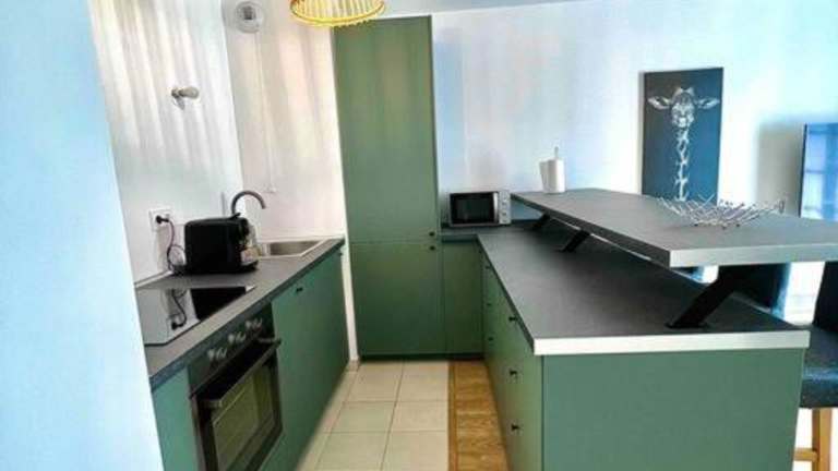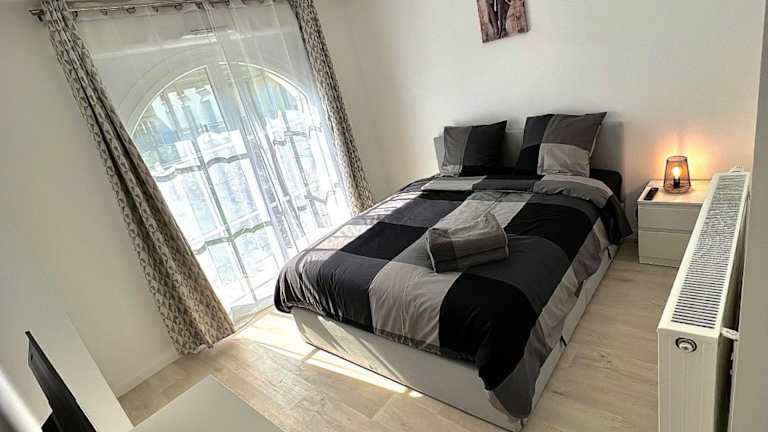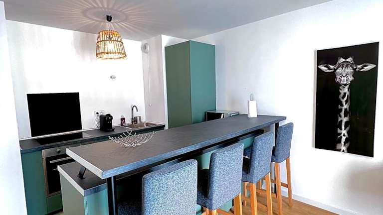 Die Ferienwohnung ist klimatisiert und verfügt über ein Schlafzimmer. Zur Ausstattung gehören ein Flachbild-TV, eine Küche mit Kühlschrank und Geschirrspüler sowie die Bereitstellung von Handtüchern und Bettwäsche.