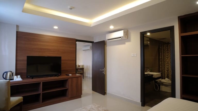 Die Zimmer im Next Hotel Yogyakarta sind ausgestattet mit Klimaanlage, einem Sitzbereich, einem Flachbild-TV mit Kabelkanälen und einem Safe. Jedes Zimmer verfügt über ein eigenes Badezimmer mit Dusche, kostenlosen Pflegeprodukten und Hausschuhen. Bettwäsche und Handtücher sind ebenfalls vorhanden.