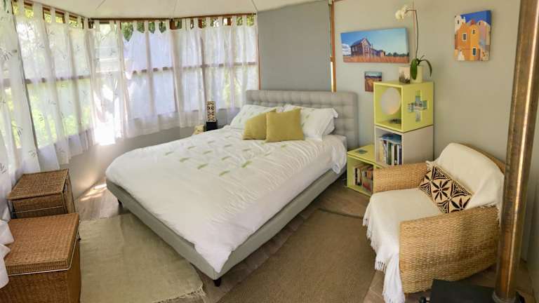 Das Ngahere Hou Glamping ist ein einzigartiges Glamping-Erlebnis abseits des Stromnetzes in einem privaten Buschreservat mit herrlichem Blick auf den Kenepuru Sound. Genießen Sie ein kontinentales Frühstück, entspannen Sie im Whirlpool und erkunden Sie die Umgebung mit Kajaks und Fahrrädern. Beachten Sie jedoch, dass aufgrund von Sturmschäden die Zufahrtsstraße vorübergehend gesperrt ist und der Zugang mit dem Wassertaxi erfolgen muss.