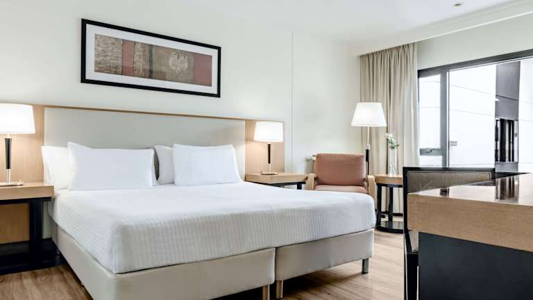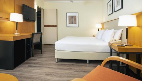 Die Zimmer im NH Bariloche Edelweiss Hotel sind geräumig und bieten einen herrlichen Blick auf den See und die umliegenden Berge. Jedes Zimmer ist exklusiv gestaltet und verfügt über ein eigenes Badezimmer, bequeme Betten, einen Flachbild-Kabel-TV und andere luxuriöse Annehmlichkeiten. Die Zimmergröße variiert zwischen 20 m² und 30 m² und bietet viel Platz für einen komfortablen Aufenthalt.
